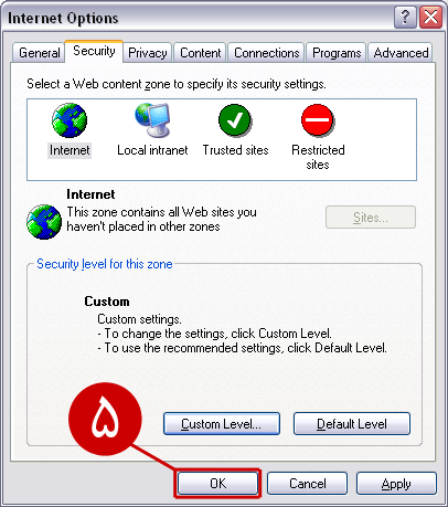 در پنجره باز شده وارد تب Security شوید، روی دکمه Custom Level کلیک کنید